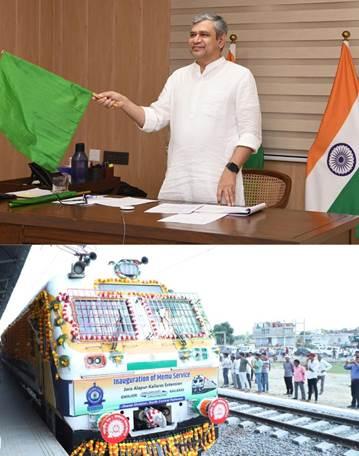 अहमदाबाद| केंद्रीय रेल, सूचना एवं प्रसारण, इलेक्ट्रॉनिक एवं सूचना प्रौद्योगिकी मंत्री अश्विनी वैष्णव ने आज वीडियो कॉन्फ्रेंसिंग के माध्यम से मध्य प्रदेश के जौरा अलापुर और कैलारस स्टेशन के मध्य आमान परिवर्तन के उपरांत नवनिर्मित रेलखंड का लोकार्पण एवं आमान परिवर्तित रेल खंड पर तीन नई गाड़ियों की विस्तारित सेवा का हरी झंडी दिखाकर शुभारंभ किया। इस उद्घाटन समारोह का आयोजन मध्य प्रदेश के जौरा अलापुर रेलवे स्टेशन पर किया गया। इस समारोह में केंद्रीय संचार एवं पूर्वोत्तर क्षेत्र विकास मंत्री ज्योतिरादित्य सिंधिया, मध्य प्रदेश विधानसभा के अध्यक्ष नरेंद्र सिंह तोमर तथा मुरैना के सांसद शिवमंगल सिंह तोमर मौजूद थे।