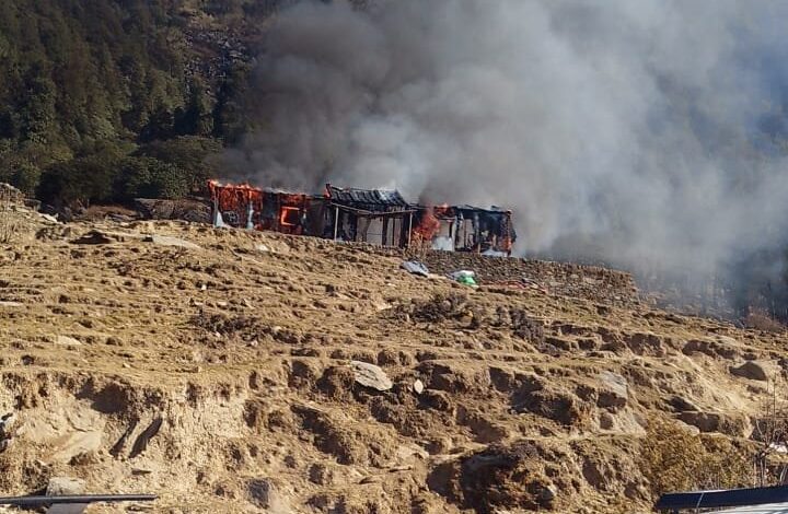 तुंगनाथ चोपता में कुडादान भवन पर अचानक आग लगने से पूरा कूड़ादान जल के राख
