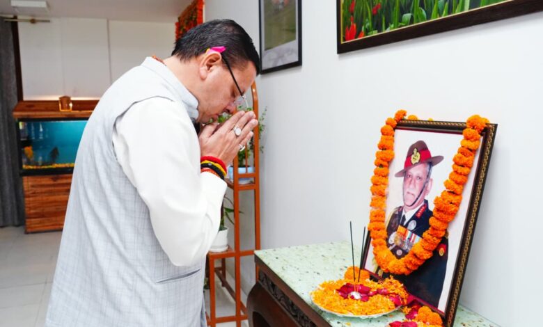 जनरल बिपिन रावत की जयंती पर मुख्यमंत्री Pushkar Singh Dhami ने दी श्रद्धांजलि