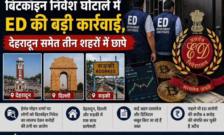 बिटकॉइन निवेश घोटाले में ED की बड़ी कार्रवाई, देहरादून समेत तीन शहरों में छापे