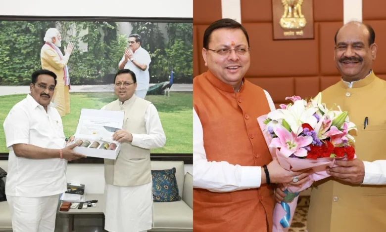 Uttarakhand News:दिल्ली दौरे पर मुख्यमंत्री पुष्कर सिंह धामी ने की लोकसभा अध्यक्ष ओम बिड़ला से शिष्टाचार भेंट, चारधाम प्रसाद और स्थानीय उत्पाद किए भेंट…