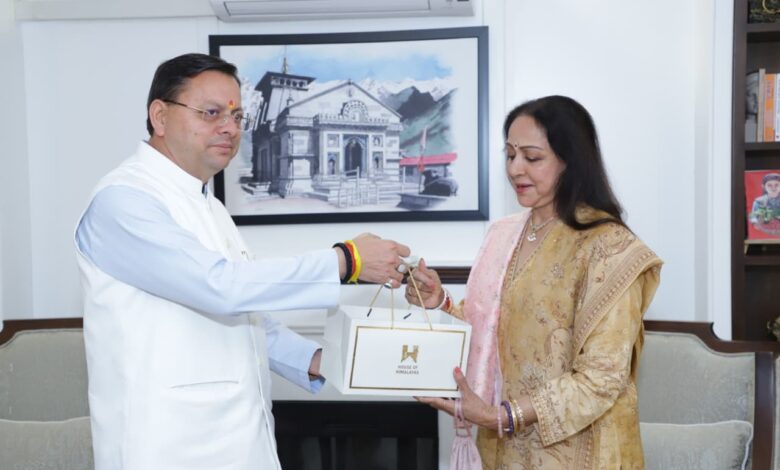 CM धामी से हेमा मालिनी की शिष्टाचार भेंट, ‘हाउस ऑफ हिमालयाज़’ उत्पाद भेंट