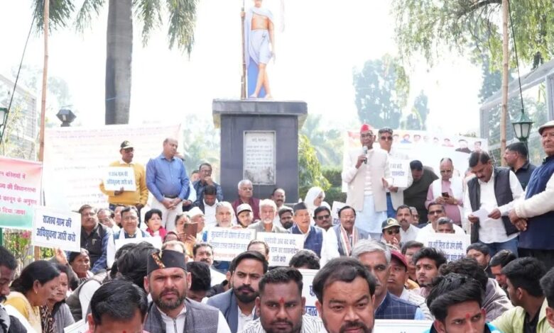 मालिन बस्तियों के मालिकाना हक को लेकर INDIA गठबंधन का गांधी पार्क में धरना