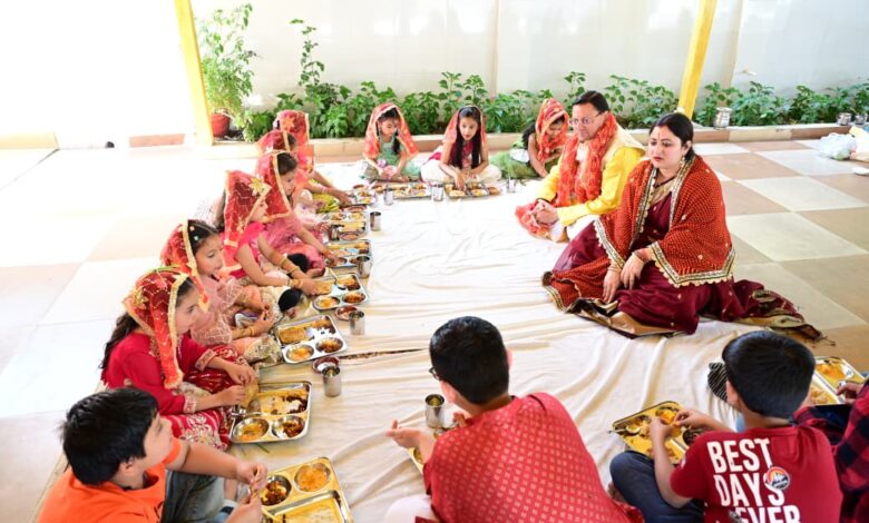 मुख्यमंत्री पुष्कर सिंह धामी ने रामनवमी के पावन अवसर पर मुख्यमंत्री आवास में किया कन्या पूजन, प्रदेश की खुशहाली की कामना