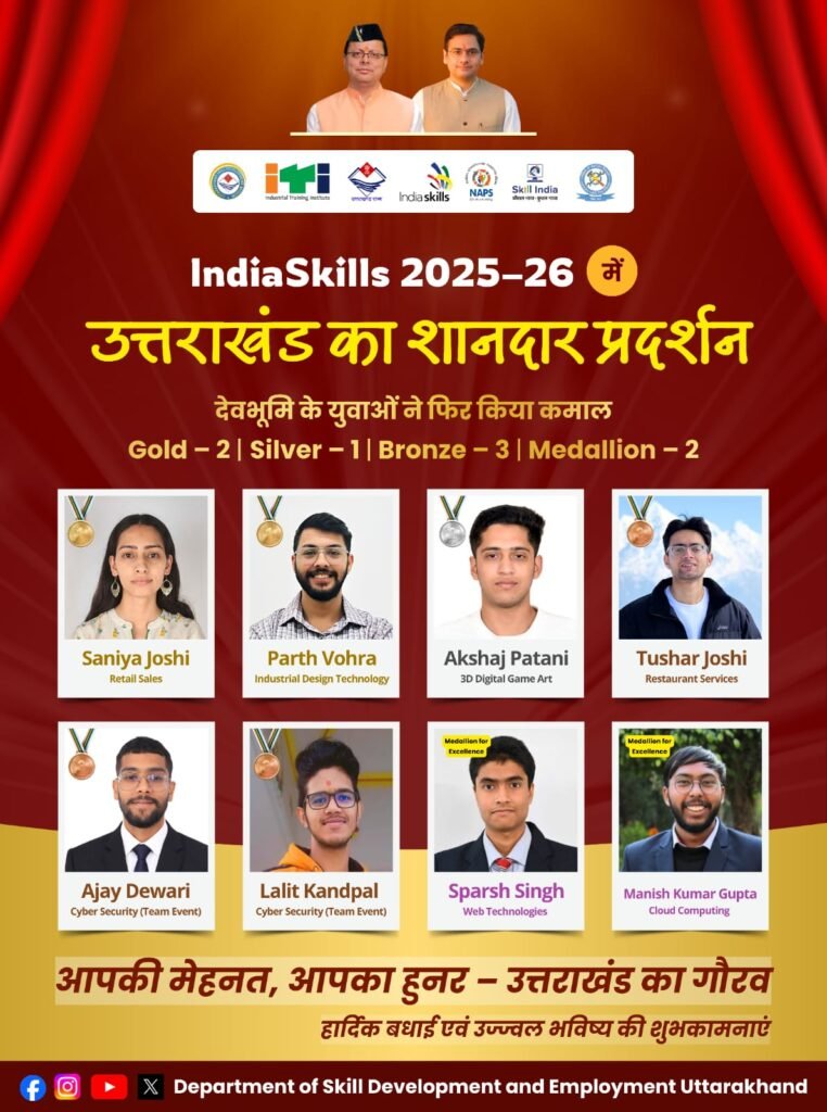Skill India 2025–26 के नेशनल लेवल पर उत्तराखंड के युवाओं ने कुल मिलाकर प्रभावशाली प्रदर्शन किया: