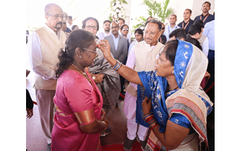 उनके यहां पहुंचने पर राज्यपाल श्री रमेन डेका, मुख्यमंत्री विष्णु देव साय, प्रथम महिला श्रीमती रानी डेका काकोटी, मुख्यमंत्री की धर्मपत्नी श्रीमती कौशल्या देवी साय सहित परिजनों ने परंपरागत रूप से उनका आत्मीय स्वागत किया।