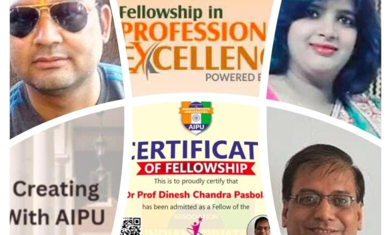देहरादून: 28 दिसम्बर 2026, रविवार। एसोसिएशन ऑफ इंडियन प्राइवेट यूनिवर्सिटीज (AIPU), गाजियाबाद , उत्तर प्रदेश, भारत द्वारा आयुर्वेद विभाग, उत्तराखंड के दो काबिल आयुर्वेद चिकित्सा अधिकारियों डॉ० प्रो० डी० सी० पसबोला और डॉ० अजय चमोला को “Fellowship In Ayurveda (FAIPU)” उपाधि सम्मान प्रदान किया गया है। जिसके डाइरेक्टर, फेलोशिप अफेयर्स – डॉ० सी० वेणुगोपाल राव एवं चीफ एक्जीक्यूटिव आफिसर – डॉ० नवीन अमन्ना हैं